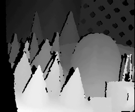 但不得不讨论的是,视差填充始终是不精确的,无论是取最小值还是取中值,它只能说是通过周围的有效值来预测,所以精确程度是有限的,换句话说,遮挡区像素都看不见,何以预测出十分精确的值?所以我们通常会根据应用需求来决定是否执行视差填充,如果实际要求每个点足够准确,而不太要求是否足够完整,那么就不需要做视差填充;而如果要求视差图足够完整,而对填充精度要求不高,则可以执行视差填充。